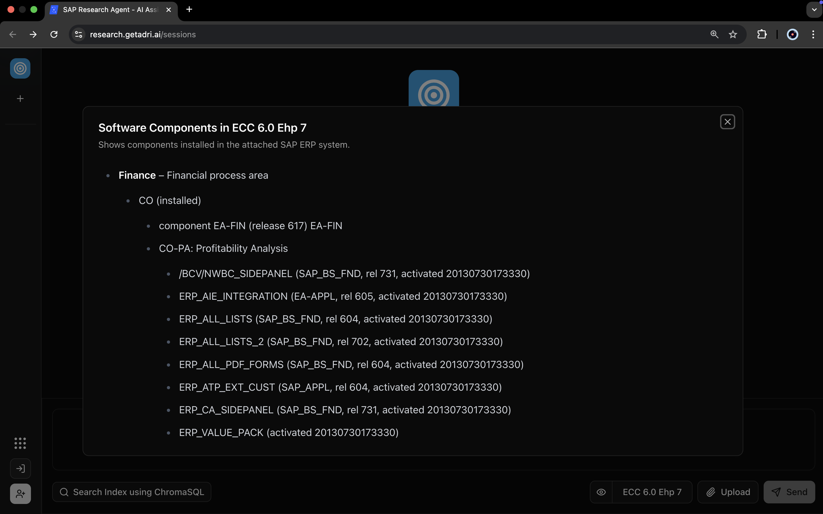 Search components using the SAP Research Agent or by writing ChromaSQL queries directly.
