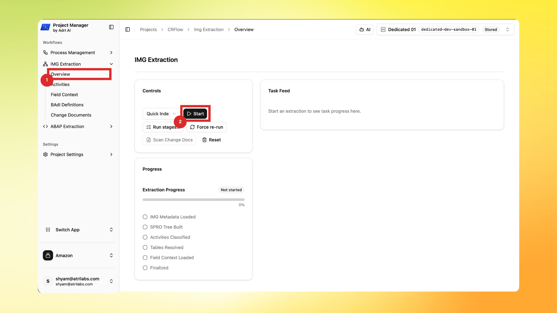 - In Project Manager, go to IMG Extraction -> Overview and click Start.